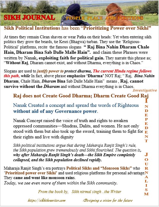 sikh writer Nirmal Singh; Maharaja Ranjit Singh’s era portrays Political Sikhs and “Monsoon Sikhs” Today, we see even more of them..